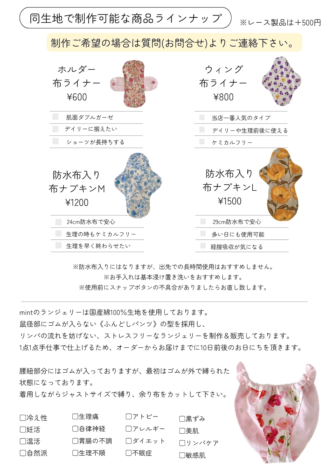 ハンドメイドコットンランジェリーのお店