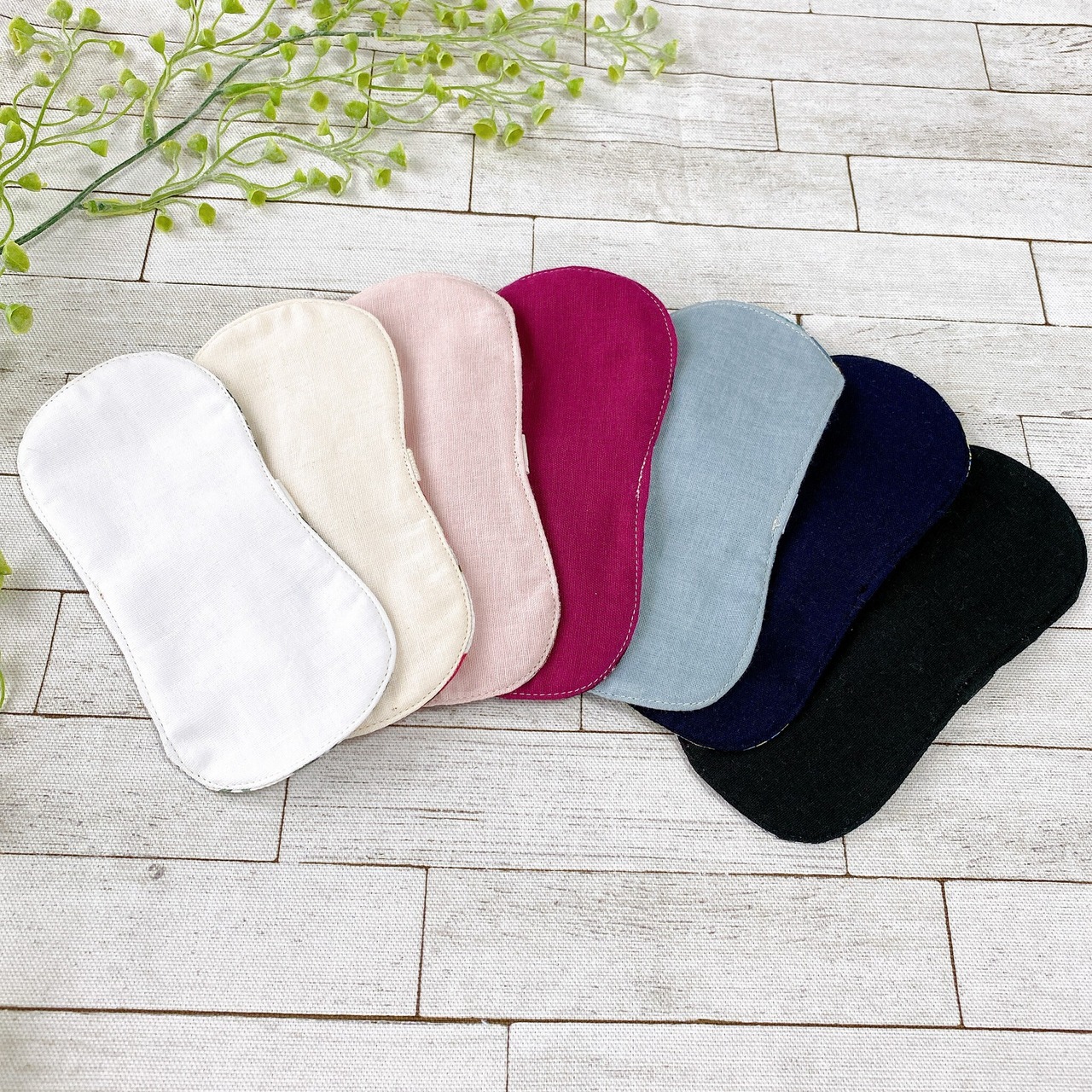 ✔布ナプキンLサイズ(防水布入り)縦29cm弱、肌面は国産綿100%ダブルガーゼ、生地間には全面にノーホルマリンネル1枚、吸収体ネル3枚、透湿防水布、肌着面は国産綿100%柄布の7枚重ね×1枚