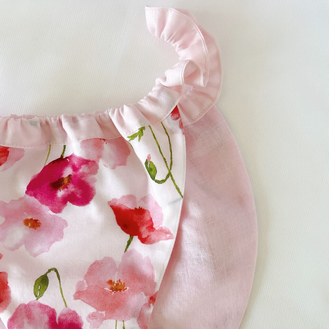 水彩タッチの大胆な花柄が存在感のある生地で、カジュアルにもエレガントにも使いやすいデザイン。