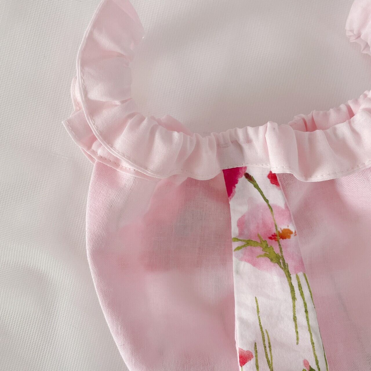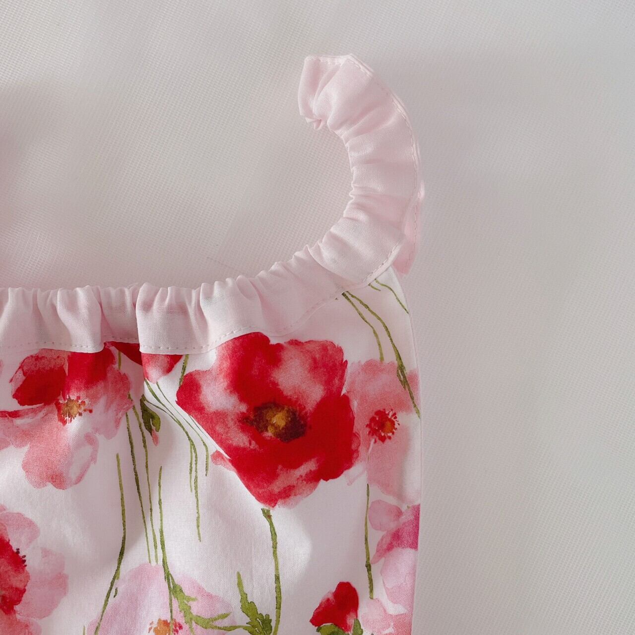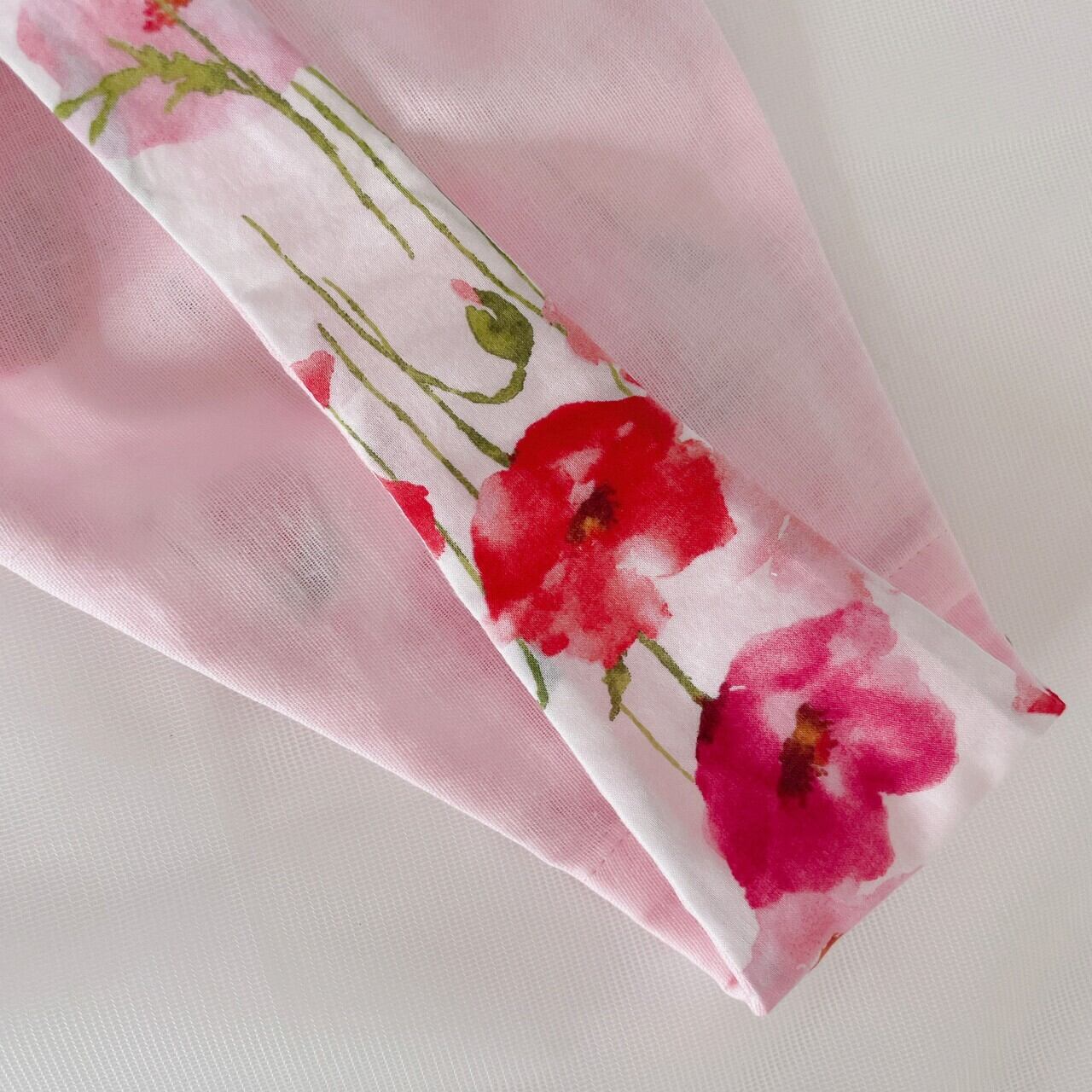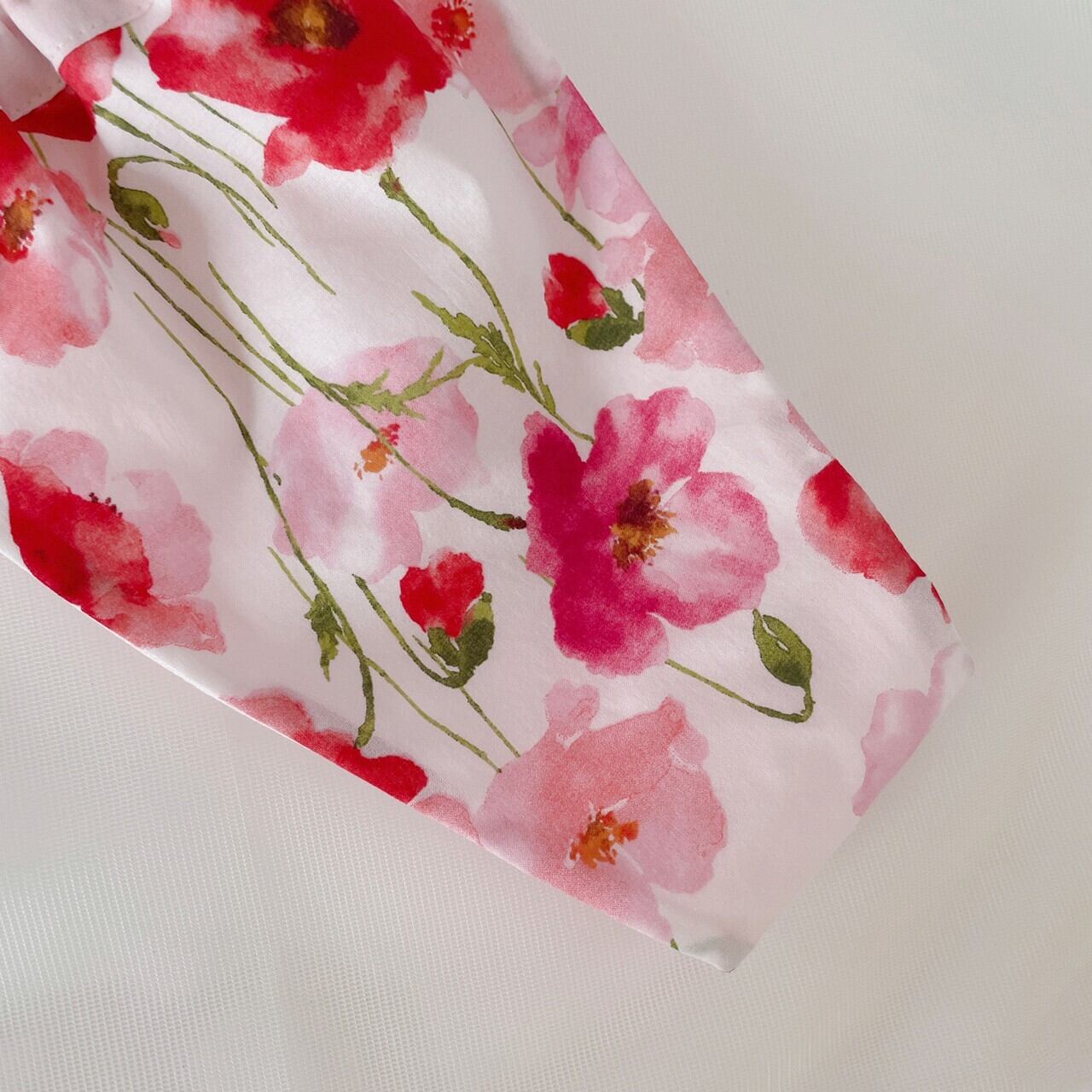 水彩タッチの大胆な花柄が存在感のある生地で、カジュアルにもエレガントにも使いやすいデザイン。