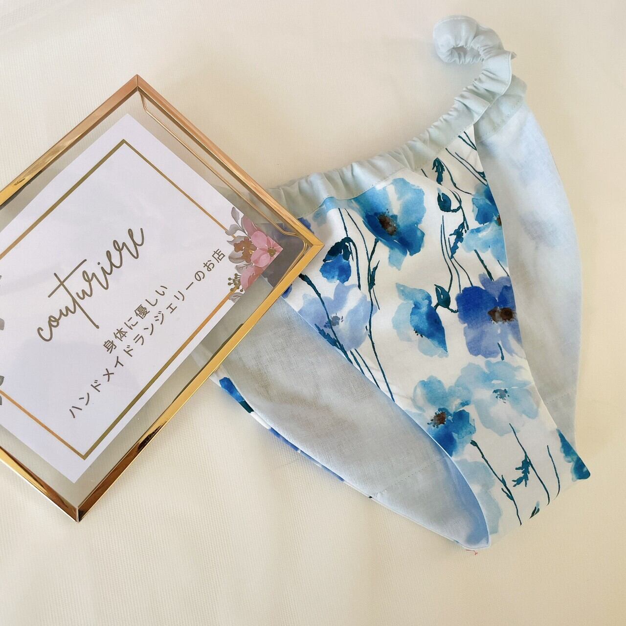 -涼やかな窓辺から見た景色 水彩ポピー青-