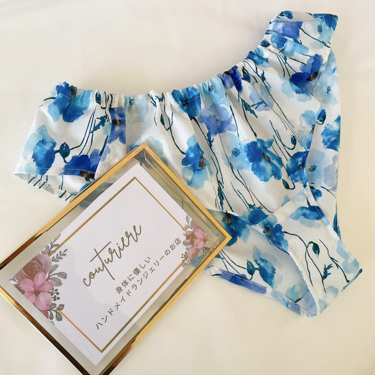 -涼やかな窓辺から見た景色 水彩ポピー青-