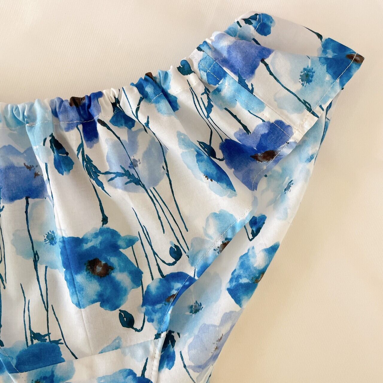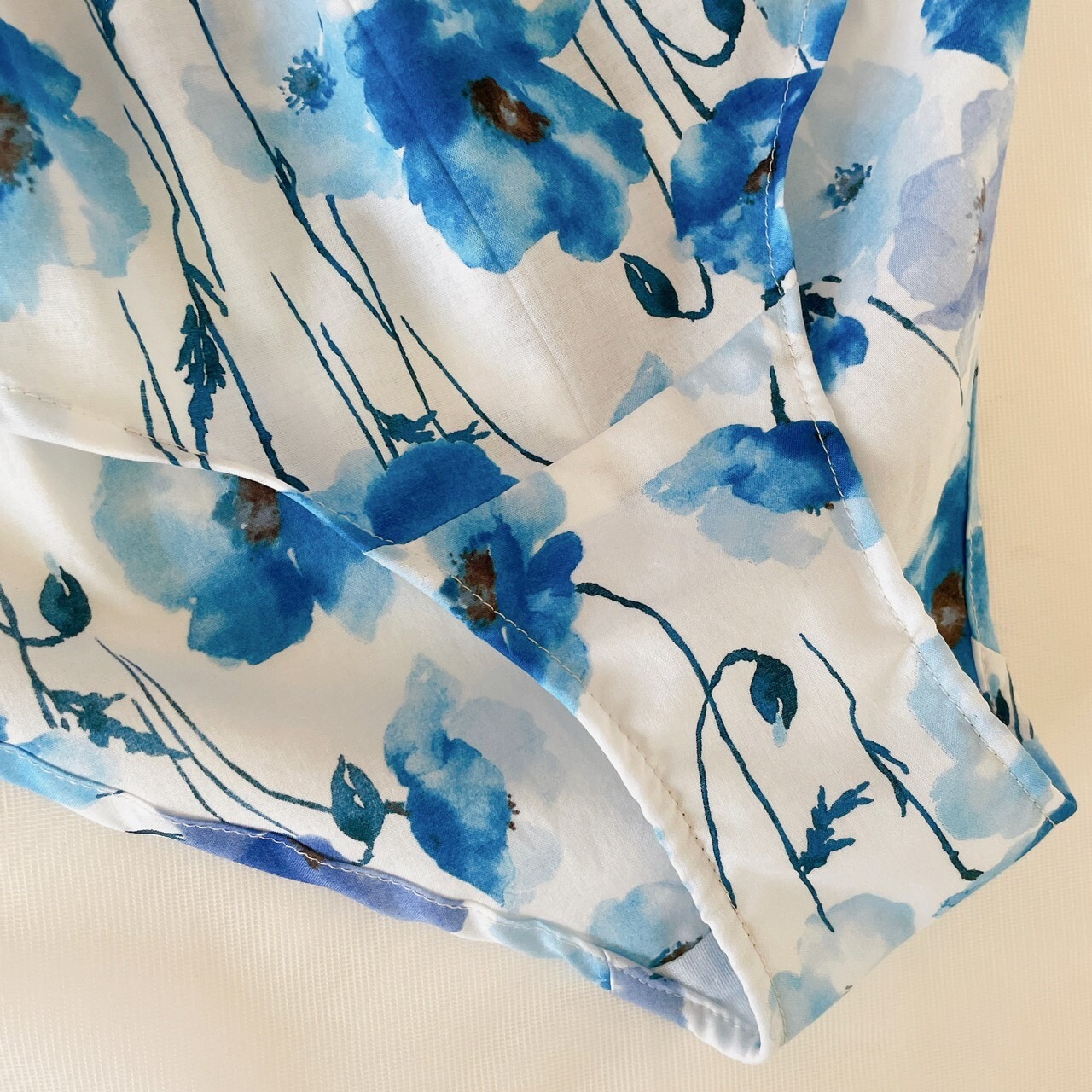 水彩タッチの大胆な花柄が存在感のある生地で、カジュアルにもエレガントにも使いやすいデザイン。