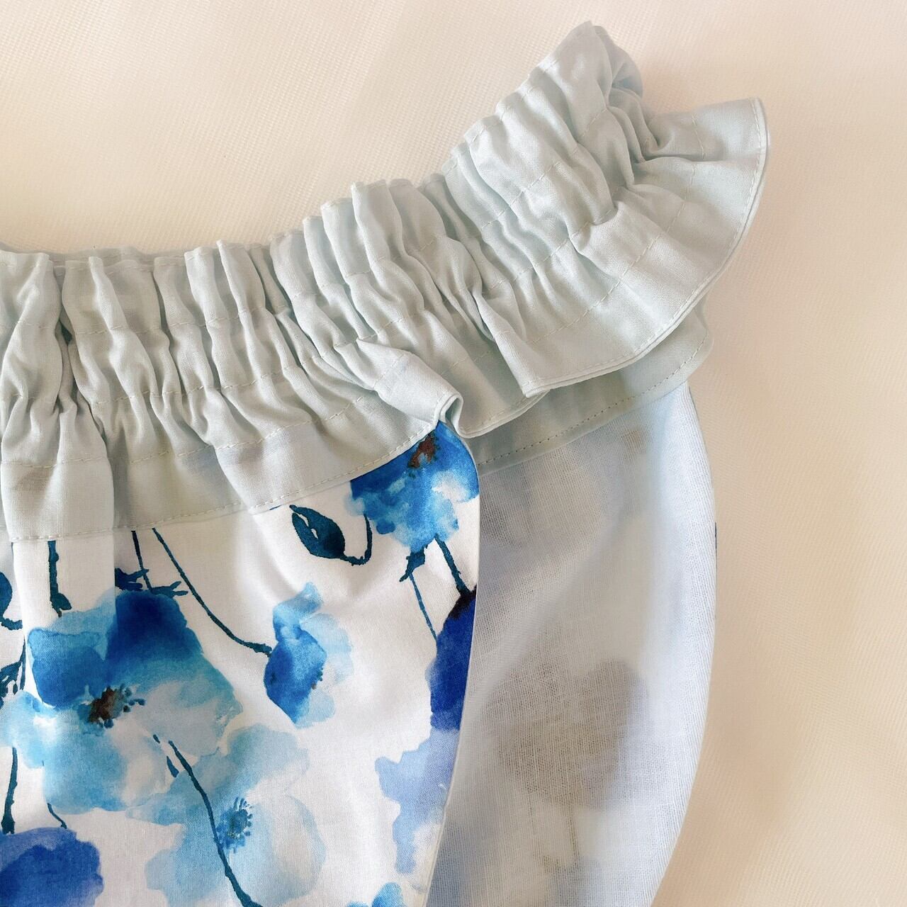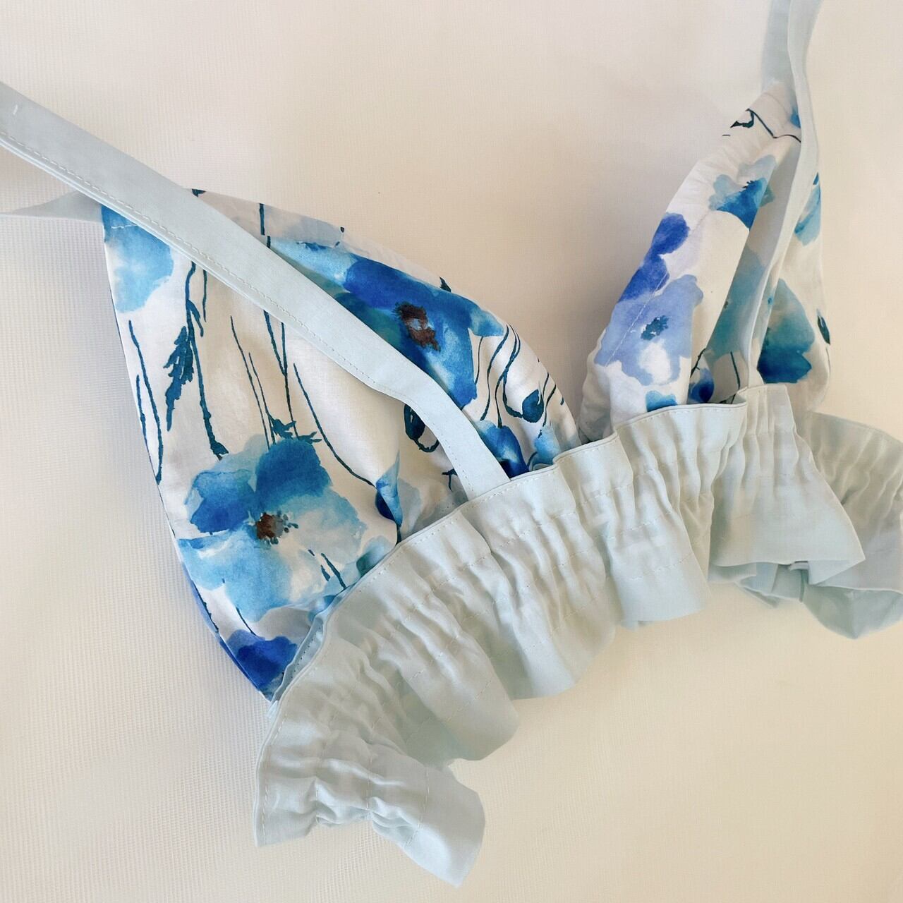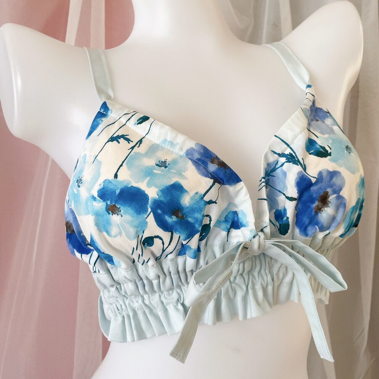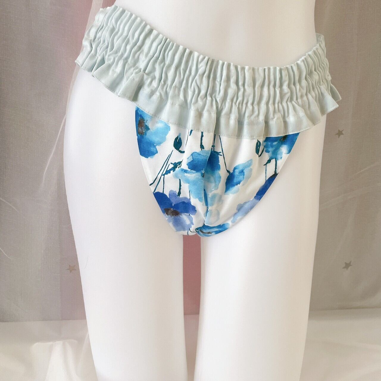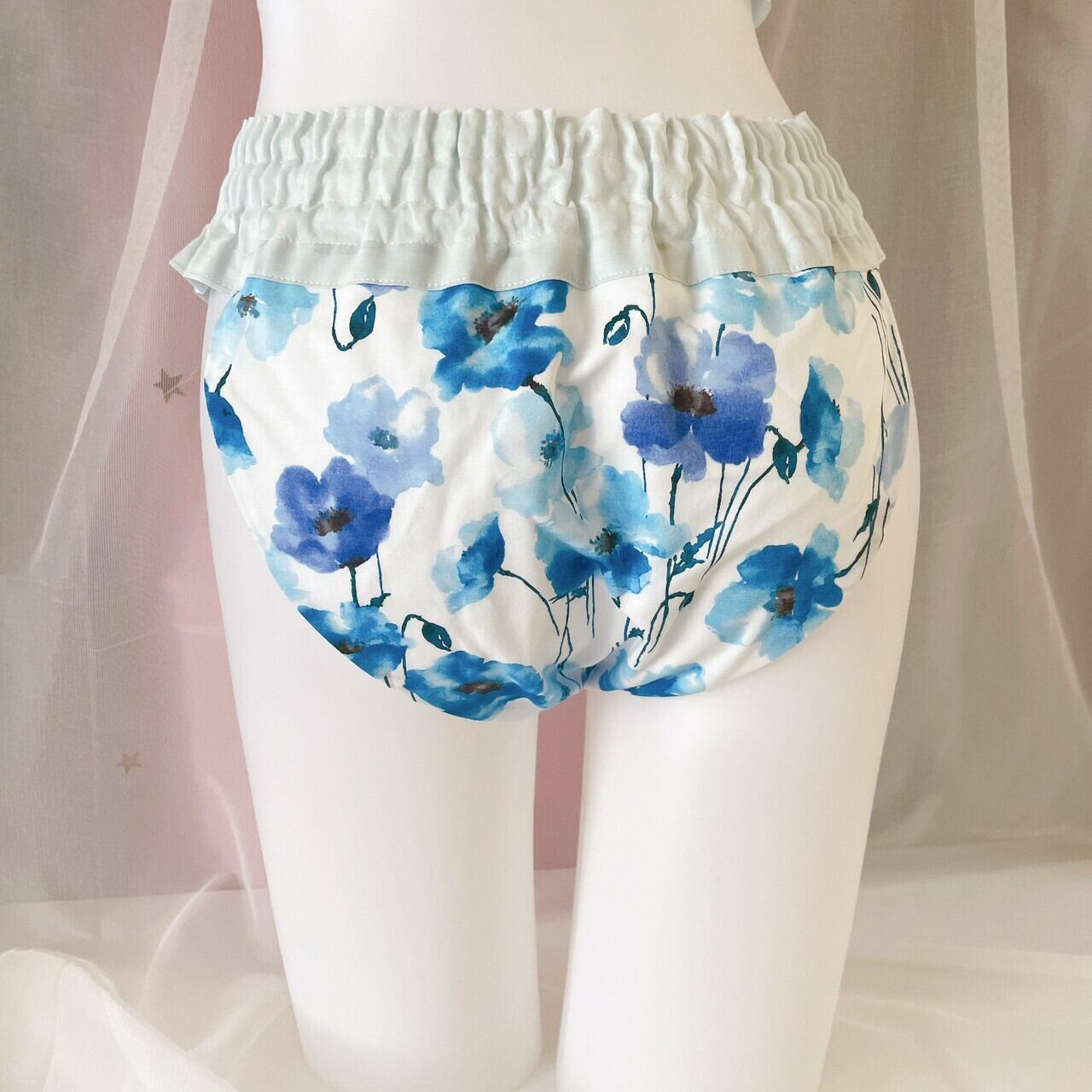 《 涼やかな窓辺から見た景色 水彩ポピー青*:・゚✧》締め付けない下着 リラックスブラジャー&ルナふんどしパンツセット | mint by couturiere*ストレスフリーなふんどしパンツのお店*