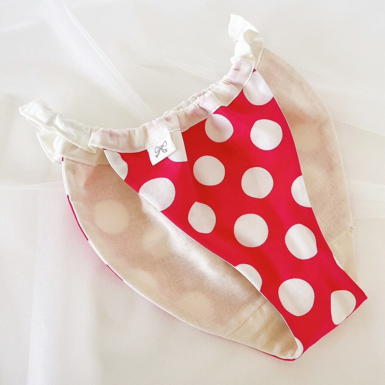 チ明先生が直接セレクトされたビビットなピンク×ホワイトのドットは小物との相性もよく、