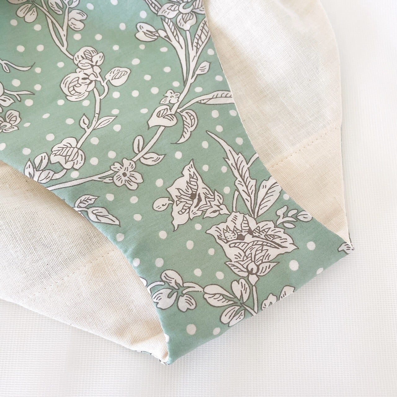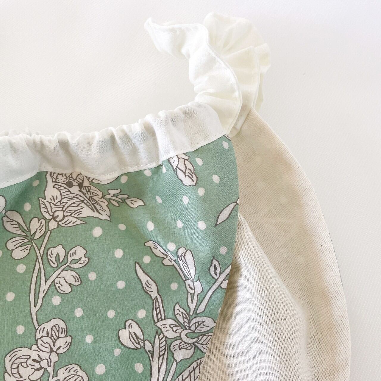 チ明先生の作品に多く登場するドットとmintカラーがコラボにぴったりだと思いこちらの生地をセレクトしました。