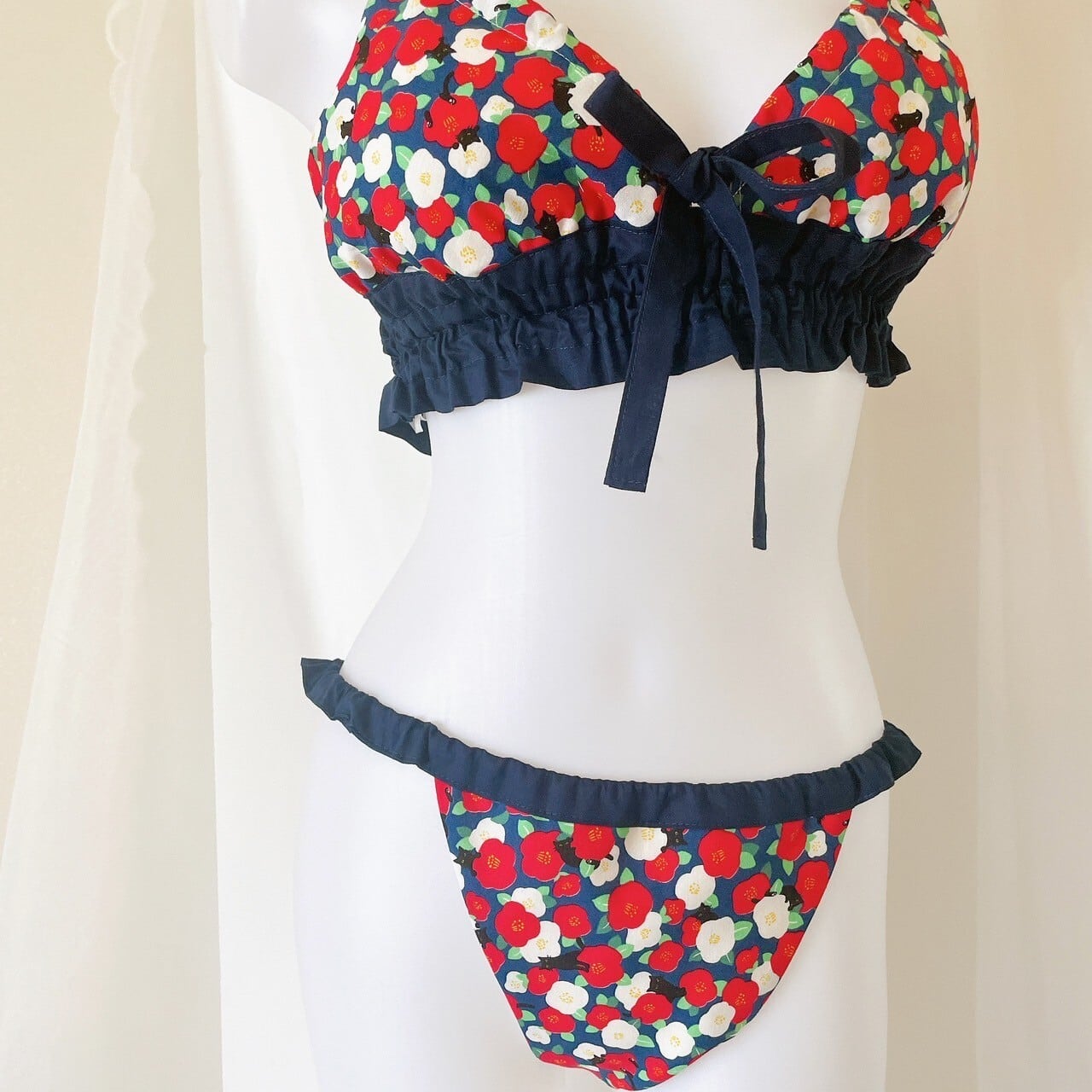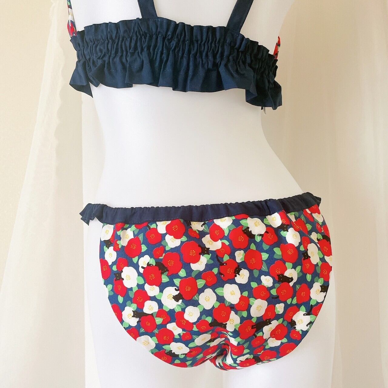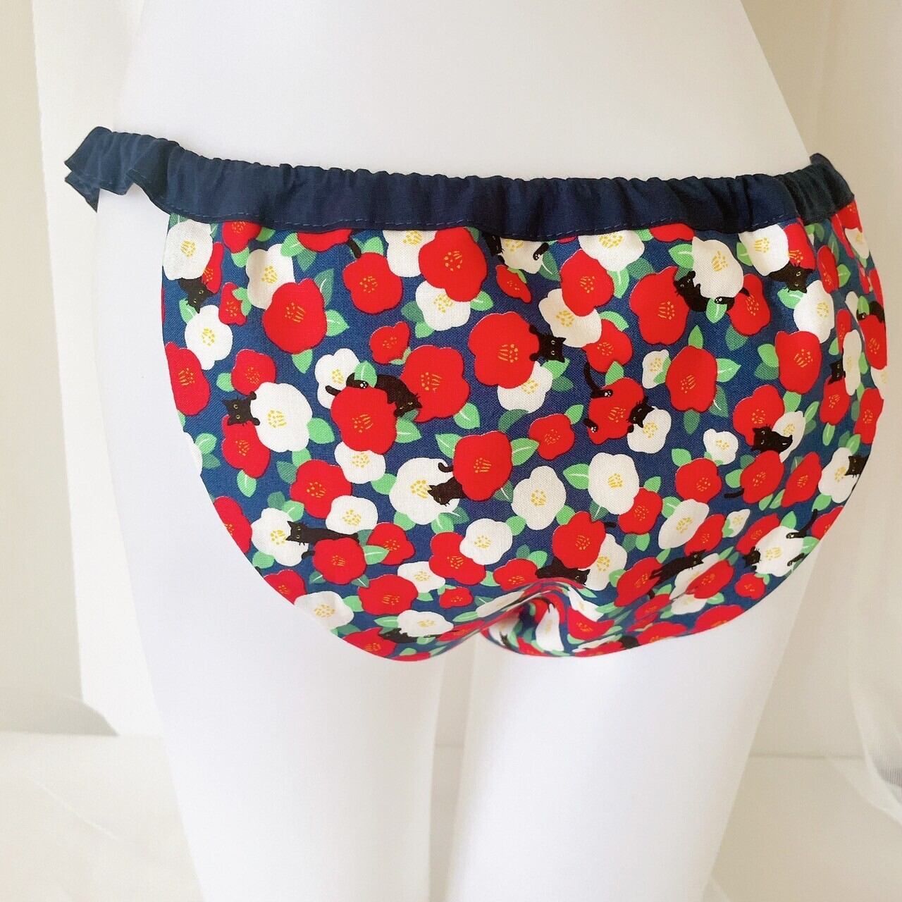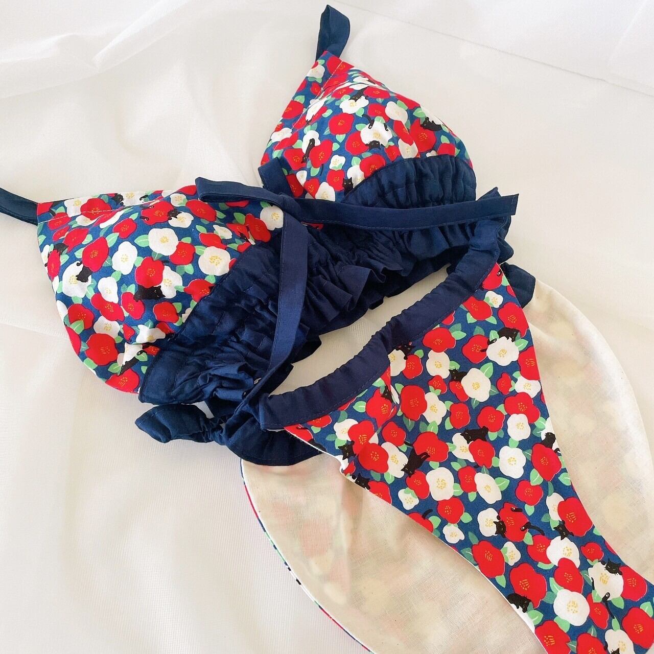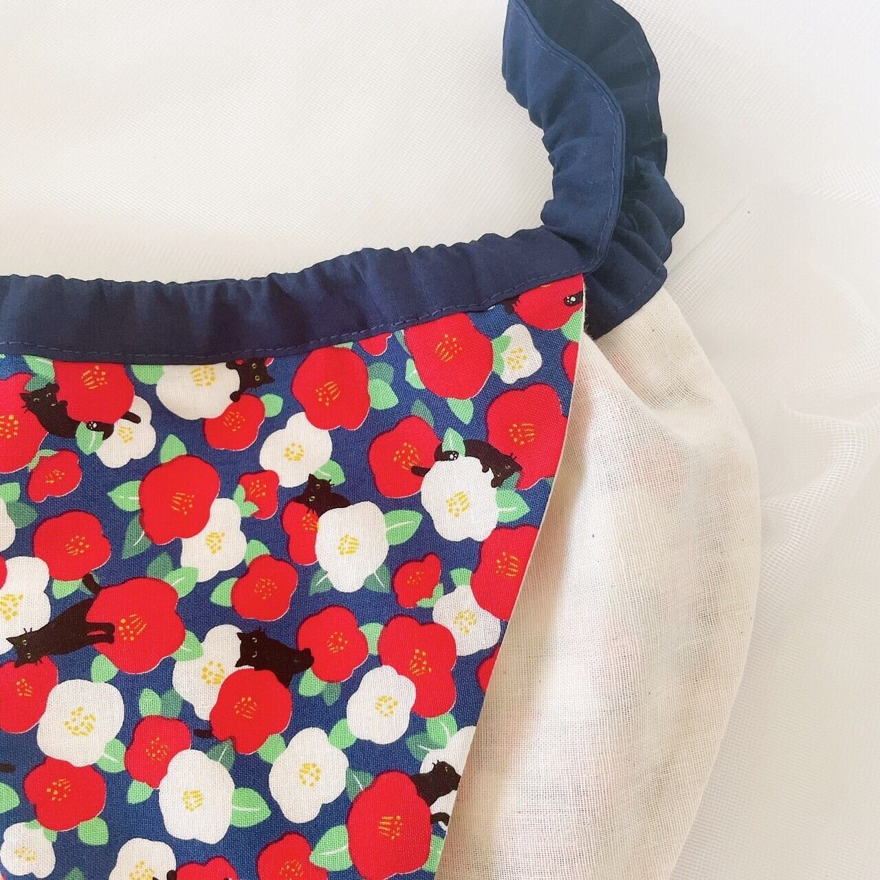チ明先生とのコラボに際し、私は椿と猫、配色にどこかジャポニズムを感じるレトロな生地をセレクトしました。