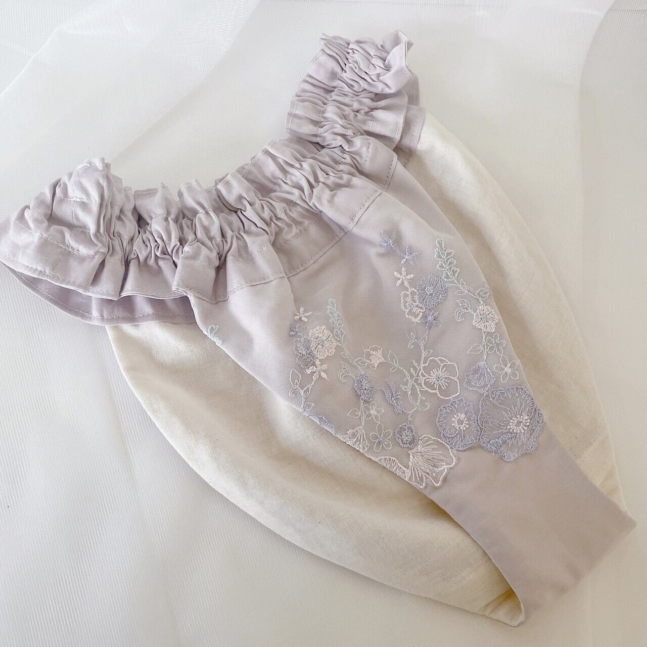 表面 国産綿100%×チュールレース