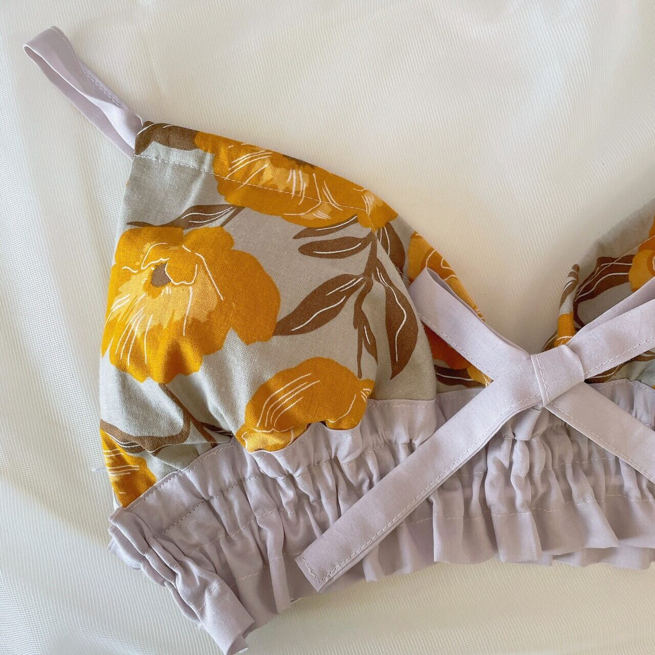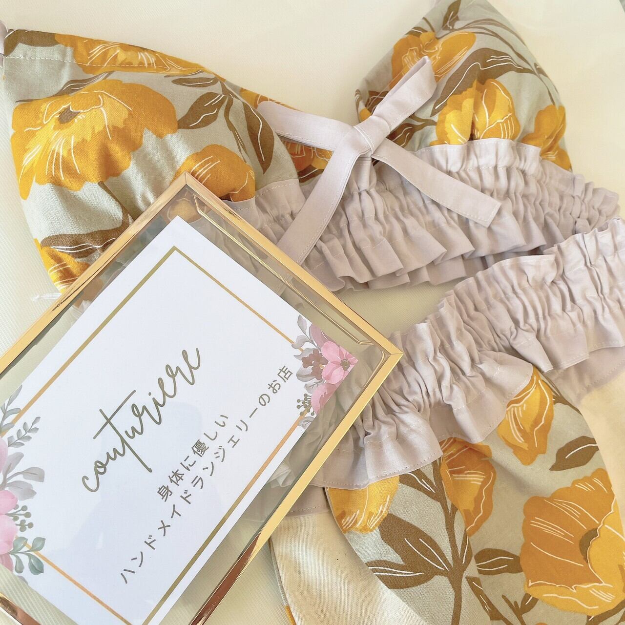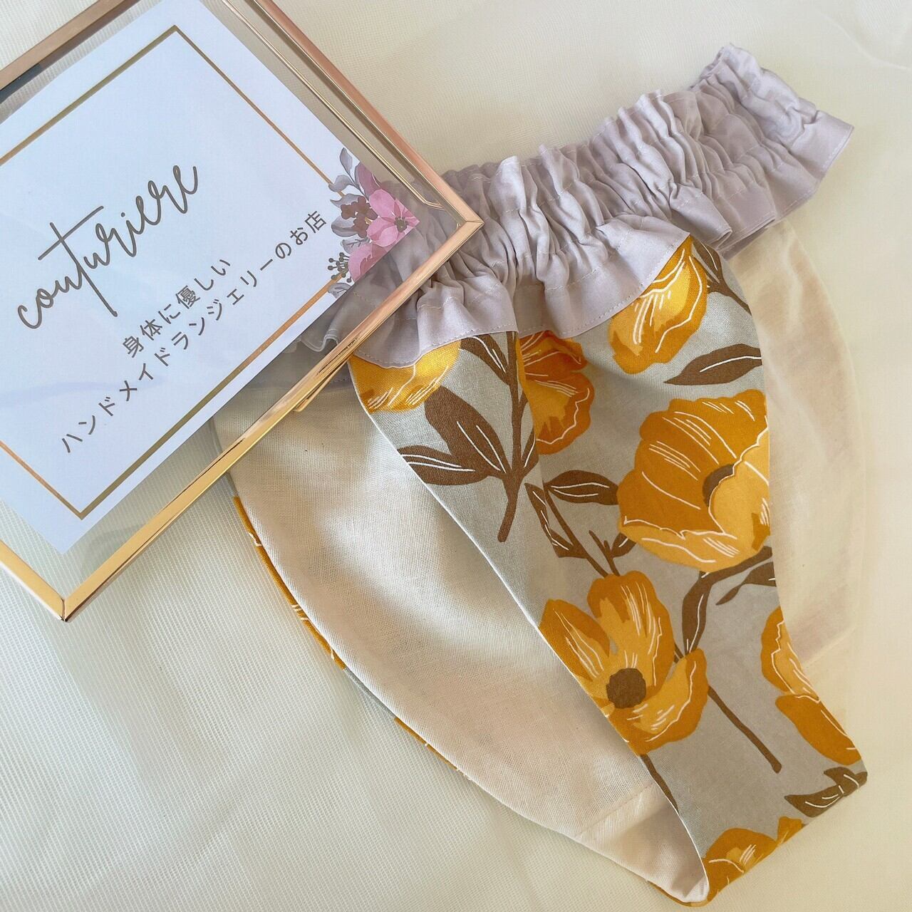 くすみ系の大判のフレンチマリアンヌが美しい綿麻生地のショーツです。