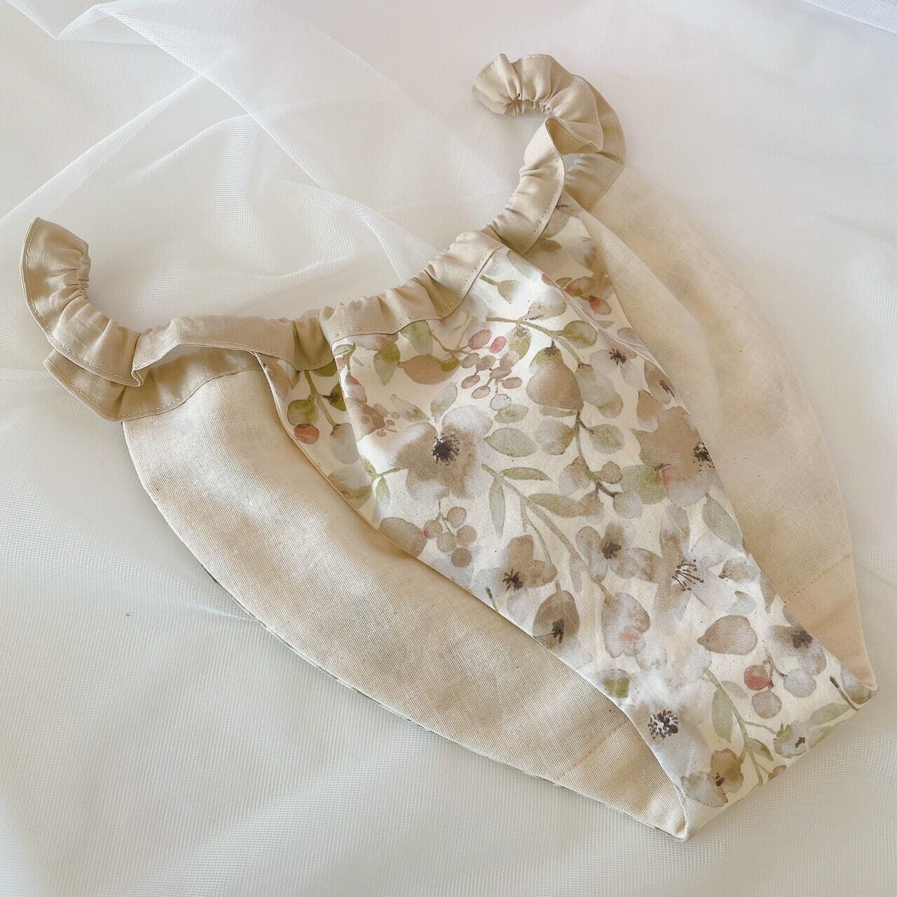 素肌にすっと馴染むようなベージュカラーリングの花柄生地です。